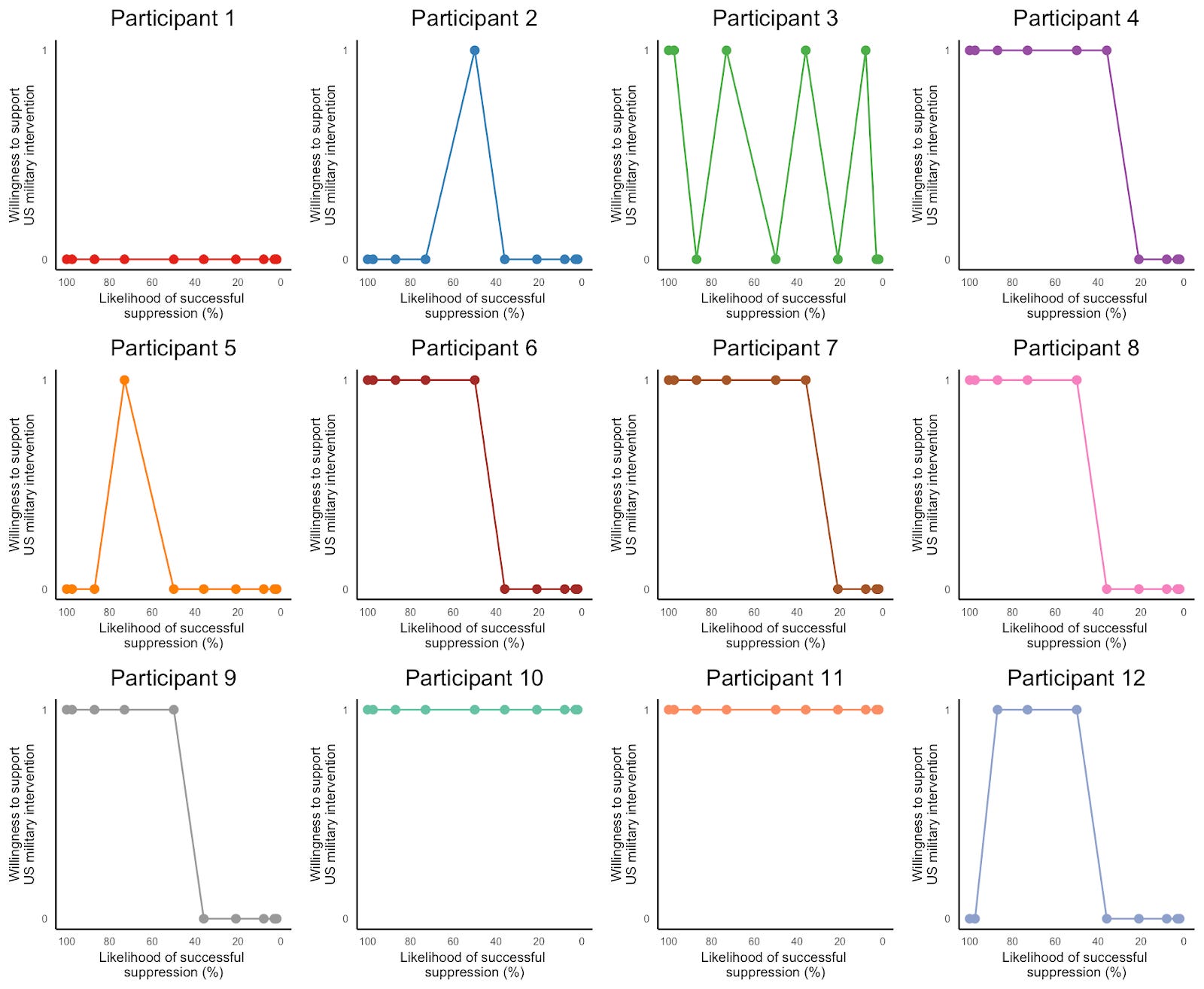 Before we go over their responses, the figure below shows the response pattern of the 12 participants we interviewed.